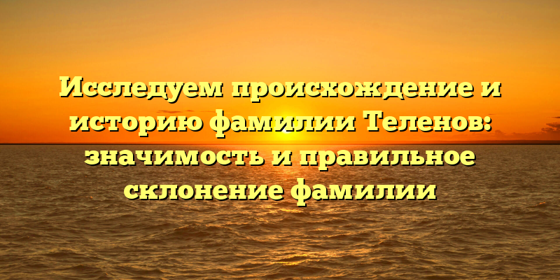 - История фамилии Теленов: откуда она произошла и как правильно ее склонять для сохранения ее значения