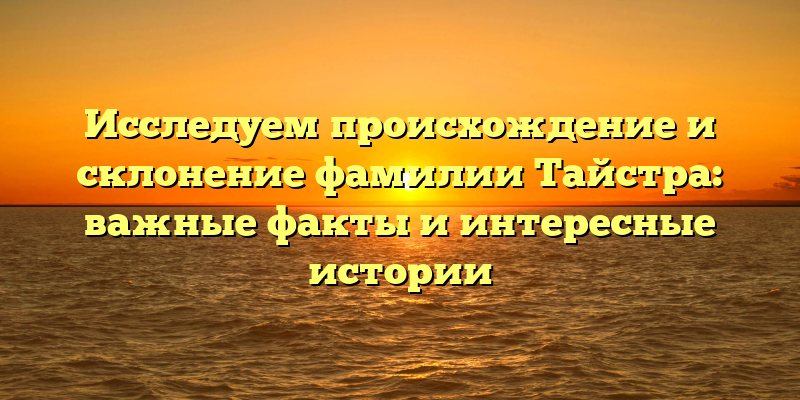- Раскрываем тайны происхождения и склонения фамилии Тайстра: узнайте захватывающие факты и заинтриговывающие истории