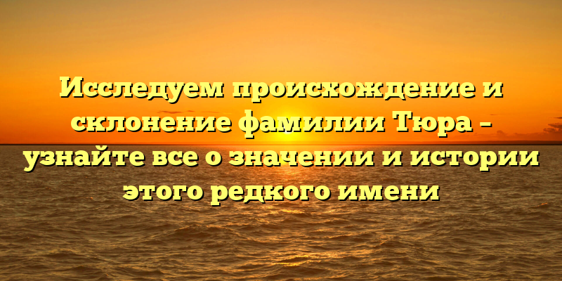 Фамилия Тюра: исследование происхождения, значения и склонения редкого имени