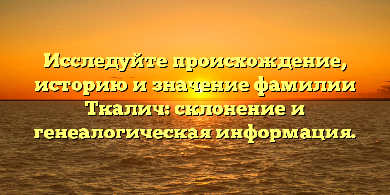 Корни вашей фамилии: история, происхождение и генеалогические записи фамилии Ткалич.