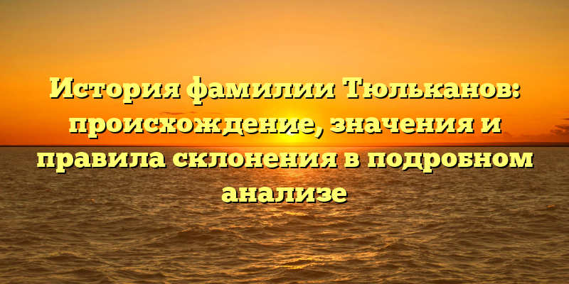 - Фамилия Тюльканов: происхождение, значения и правила склонения в историческом обзоре