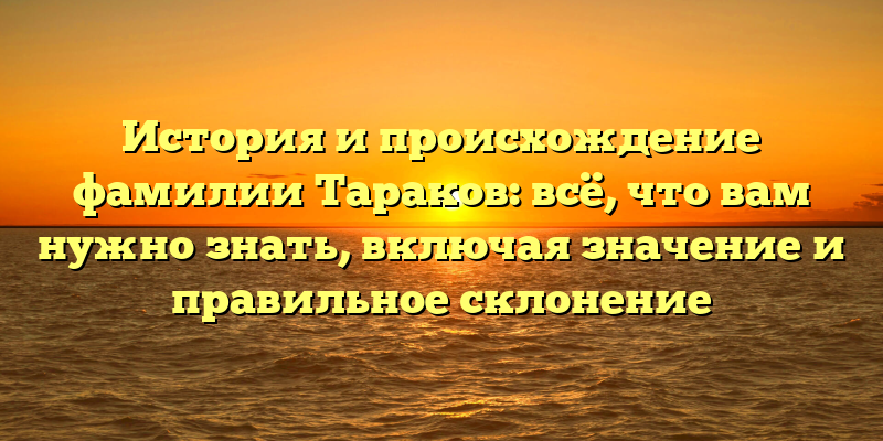 В данной статье вы найдете все необходимые сведения об истории и происхождении фамилии Тараков, ее значении и правильном склонении для использования в повседневной жизни.