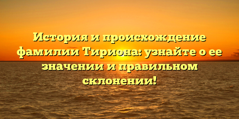 Открываем тайны фамилии Тириона: его происхождение, значение и как правильно склонять!