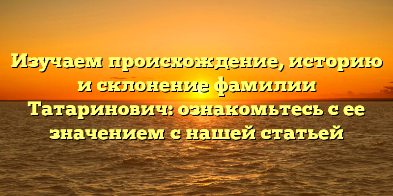 Узнайте все о происхождении, истории и склонении фамилии Татаринович: интересные факты и значения в нашей статье