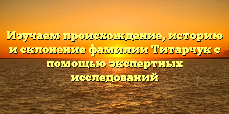 Каждая фамилия имеет свою историю происхождения, которая интересует не только ее носителей, но и генеалогов и лингвистов. В данной статье мы рассмотрим фамилию Титарчук, проанализируем ее происхождение, историю и склонение, основываясь на экспертных исследованиях.