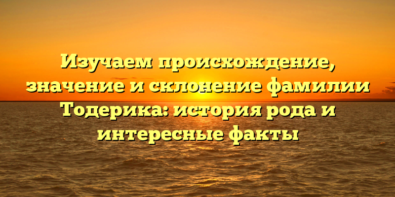 - Изучаем историю и интересные факты о фамилии Тодерика: происхождение, значение и склонение рода