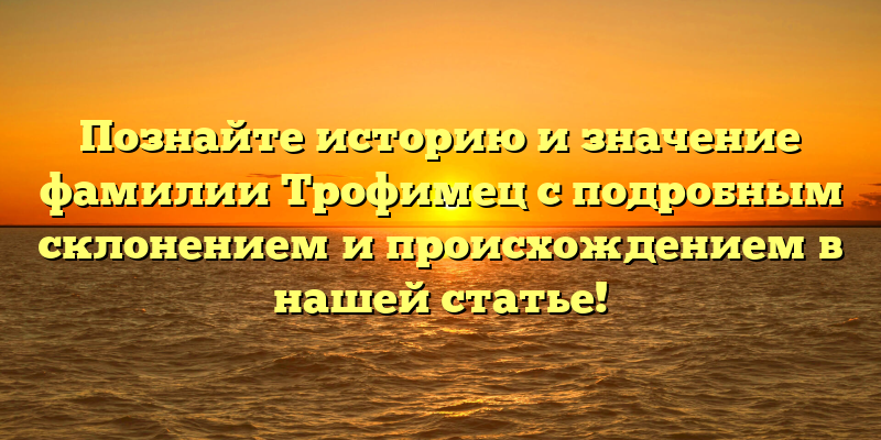 Исследуйте происхождение и значения фамилии Трофимец с полным склонением: узнайте все, что нужно знать в нашей статье!