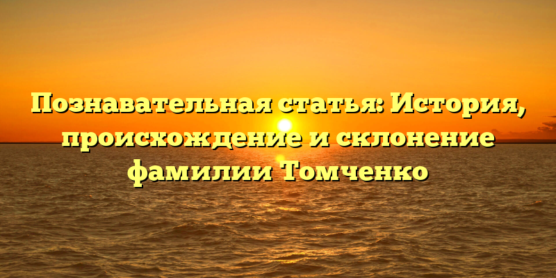 - История и происхождение фамилии Томченко: познавательная статья о происхождении и склонении