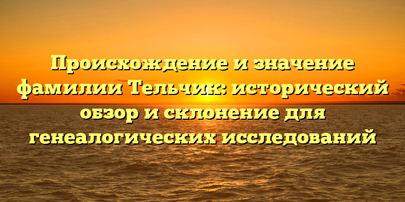 - Фамилия Тельчик: история, происхождение и значение для генеалогических исследований