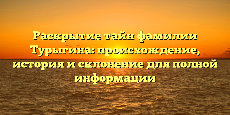 - Раскрываем тайны фамилии Турыгина: происхождение, история и склонение — все, что нужно знать!
