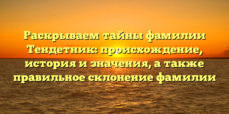 Исследуем генеалогию фамилии Тендетник: происхождение, история, значения и склонение
