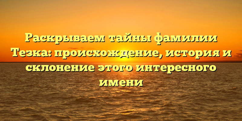В данной статье мы постараемся раскрыть все тайны фамилии Тезка, рассказать о ее происхождении и истории, о том, как склоняется это имя и даже дать несколько советов о том, как можно использовать эту фамилию в разных ситуациях.