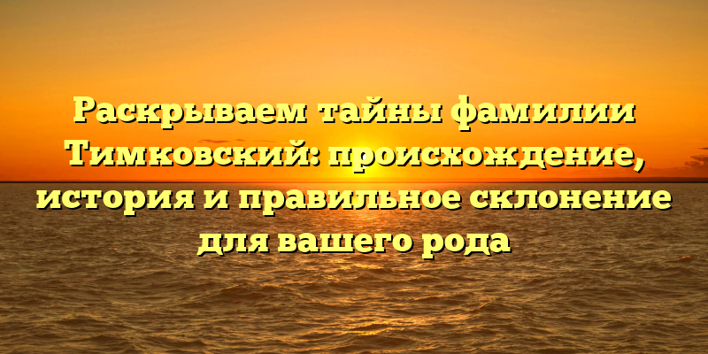 Тимковский — это одна из самых известных фамилий в России. Но где ее история начинается, как правильно ее склонять и какую связь эта фамилия имеет с нашими днями? В этой статье мы раскроем все тайны фамилии Тимковский.