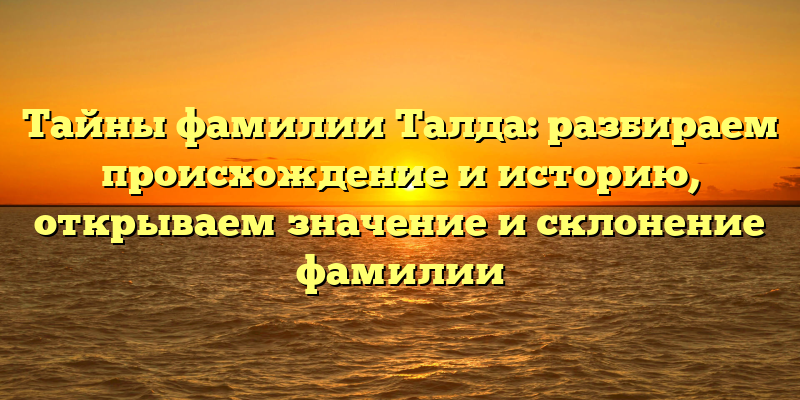 - Расшифровка тайн фамилии Талда: исследуем происхождение, историю и значение этой загадочной фамилии