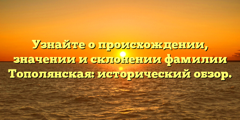 Fascinating Insights into the Origin, Meaning and Inflection of the Topolyanskaya Surname: A Historical Overview