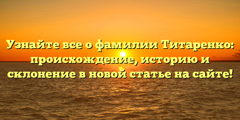 Читайте новую статью на нашем сайте и узнайте все, что вы хотели знать о фамилии Титаренко!