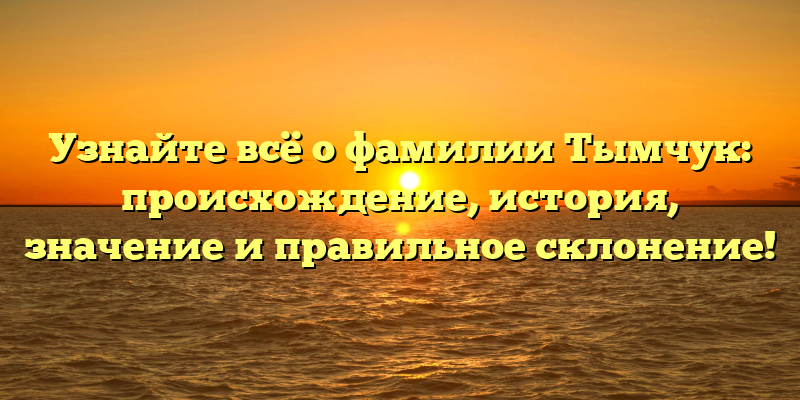 - Исследуйте происхождение и историю фамилии Тымчук: значение и правильное склонение — в одной статье.