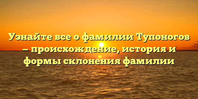 Фамилия Тупоногов — одна из многих русских фамилий, которая имеет множество вариаций написания и признаков склонения. Если вы заинтересованы в истории и происхождении фамилии, то этот материал для вас.