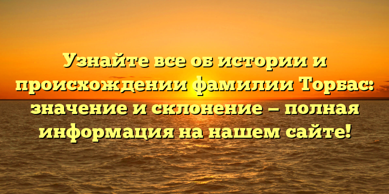 - Расшифруем тайны и происхождение фамилии Торбас: полная информация на одном сайте